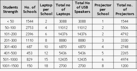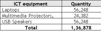 As part of this project, a total of 1,36,878 ICT equipments along with broadband internet connectivity was provided to the above schools, as detailed below.
