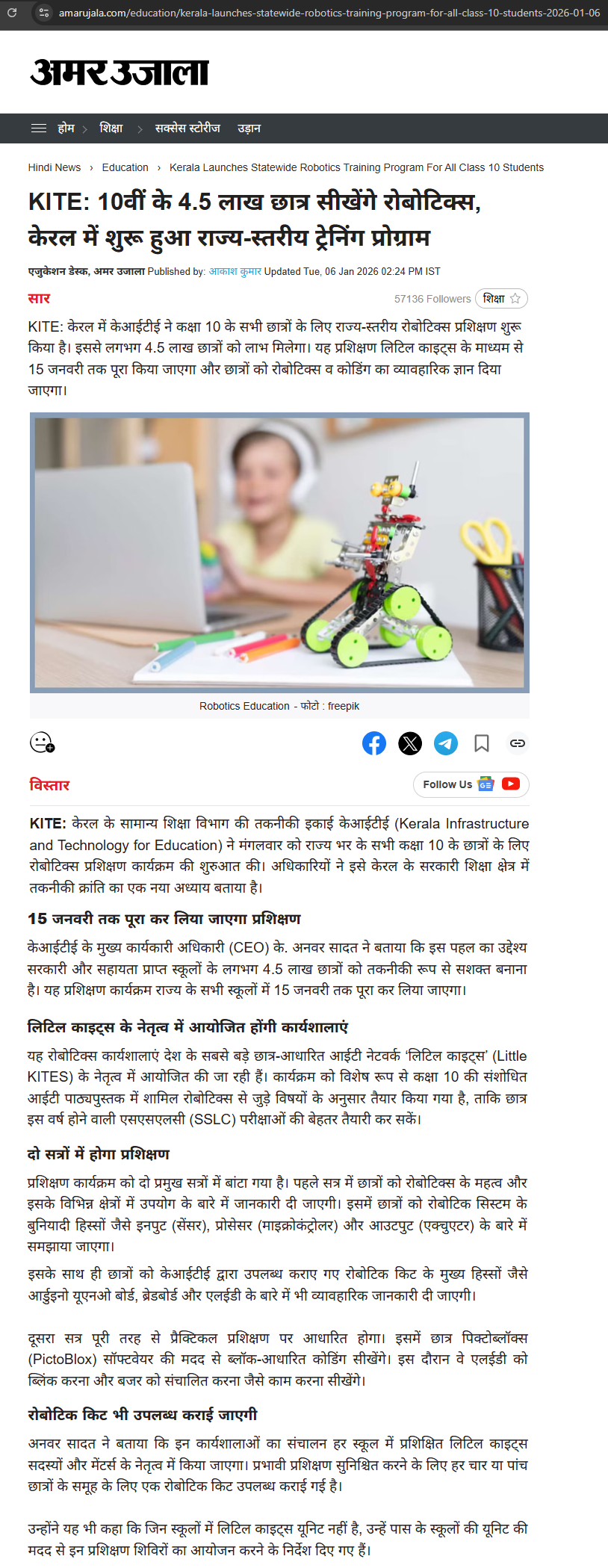 Robotics training for STD 10 - Deshabhimani 12/01/2026