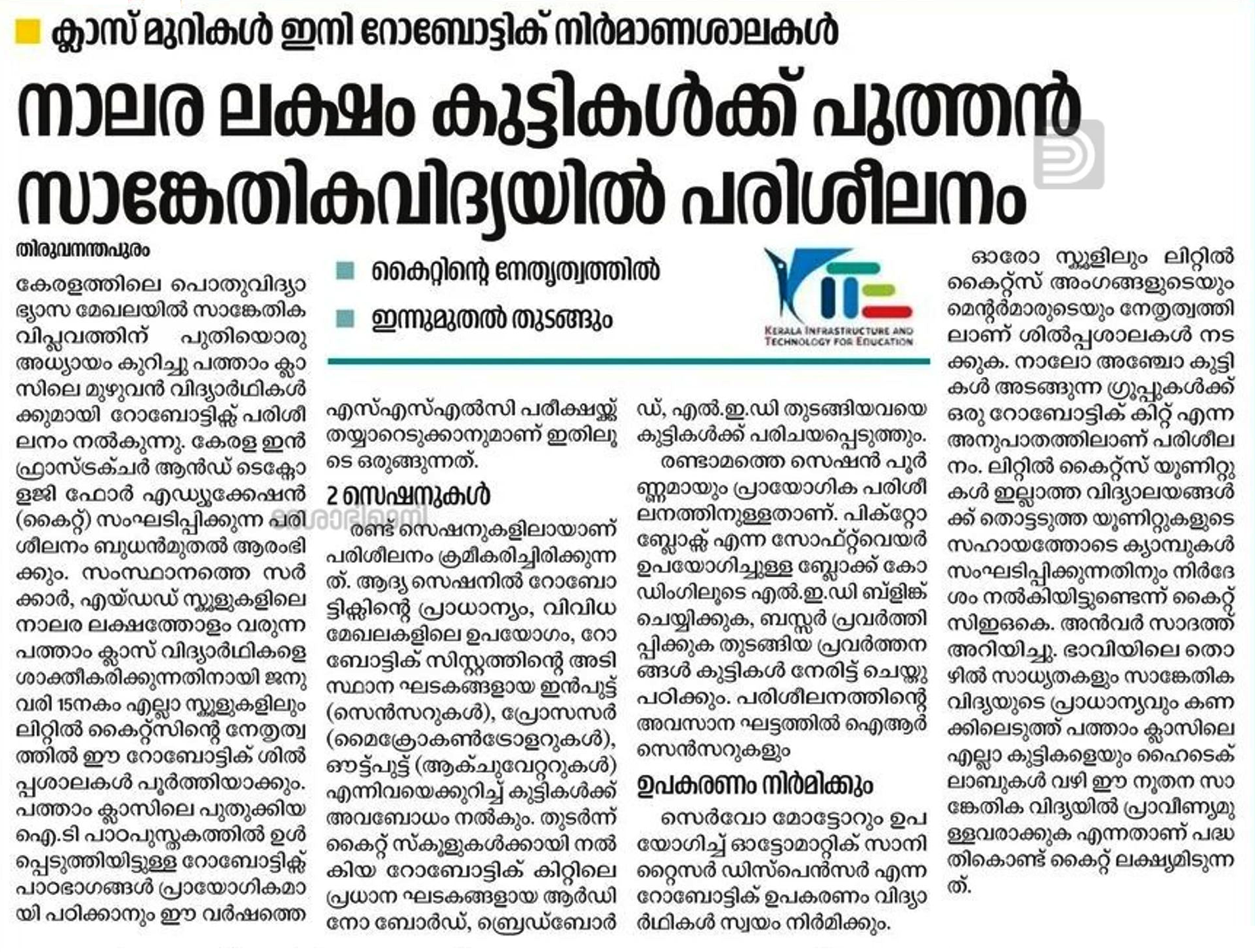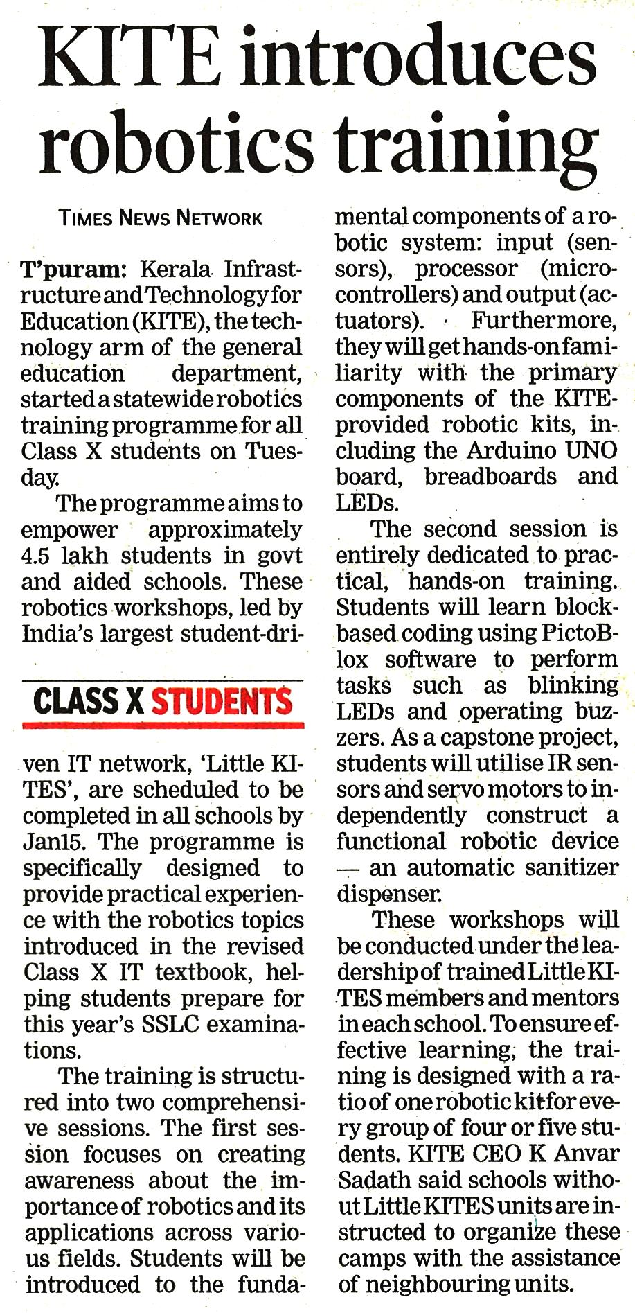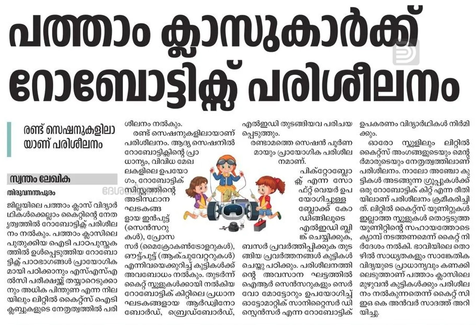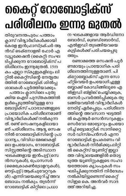 Robotics training for STD 10 - Mathrubhumi 07/01/2026