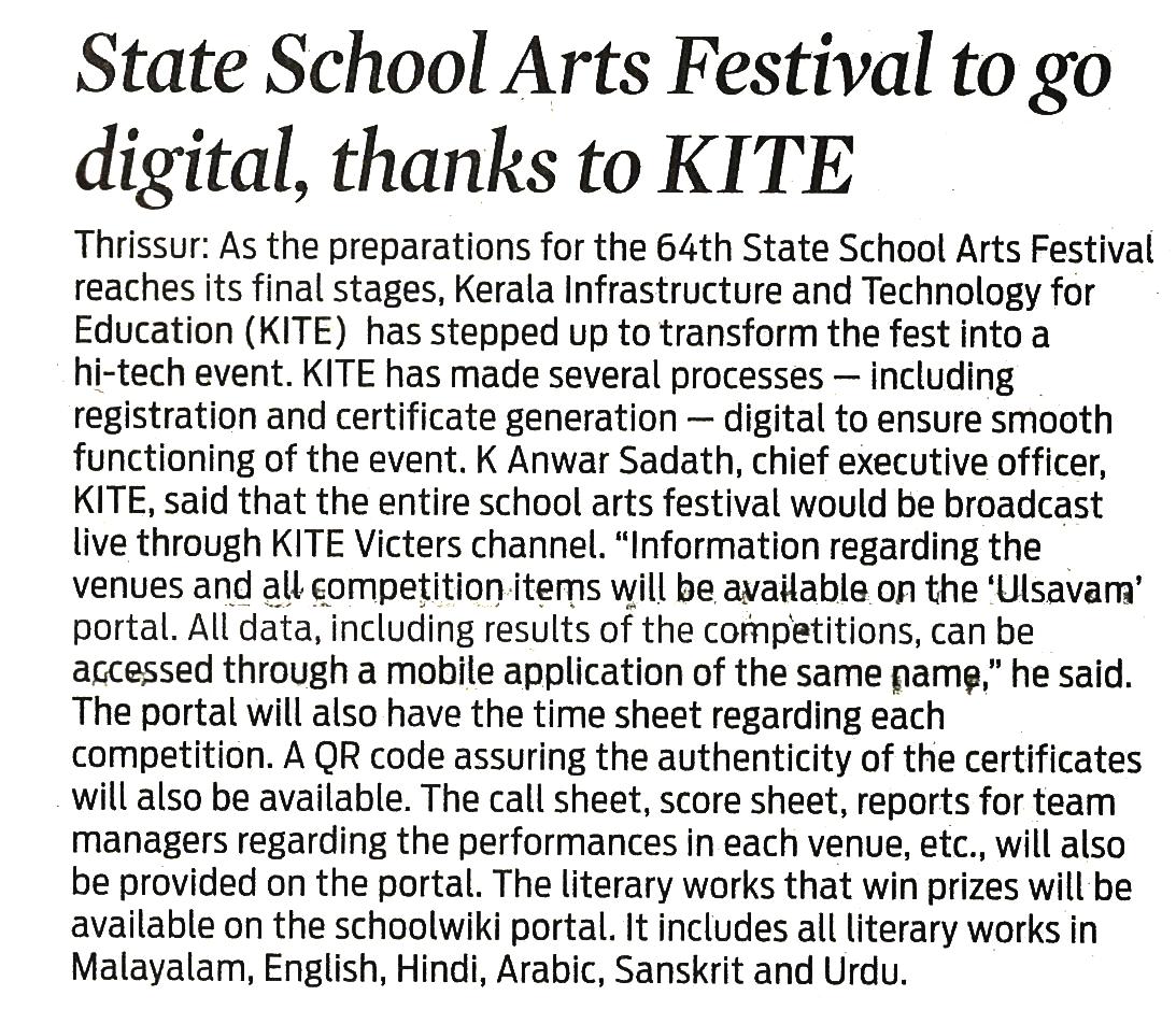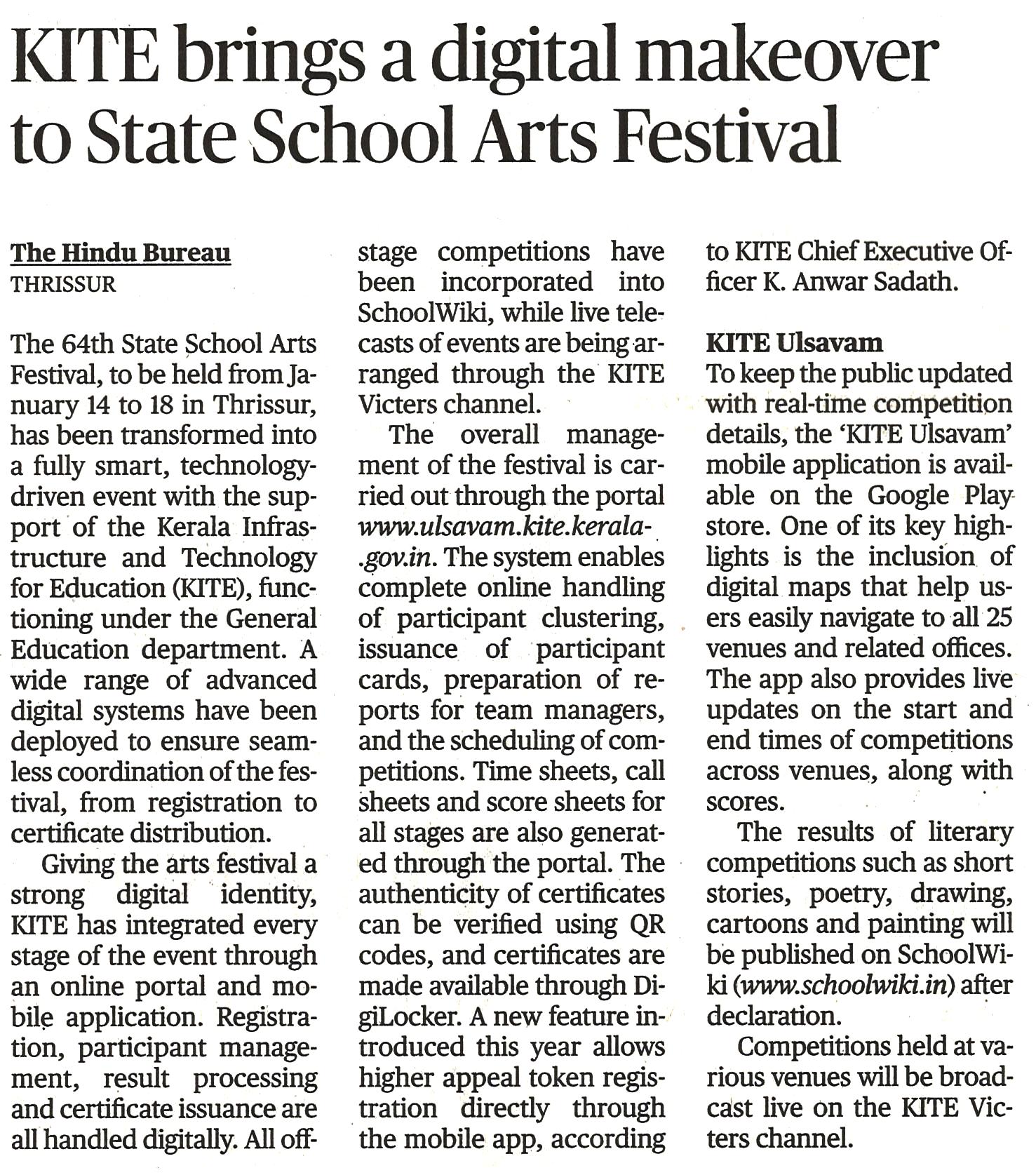 schoolwiki in Kalolsavam - Times of India 19/01/2026