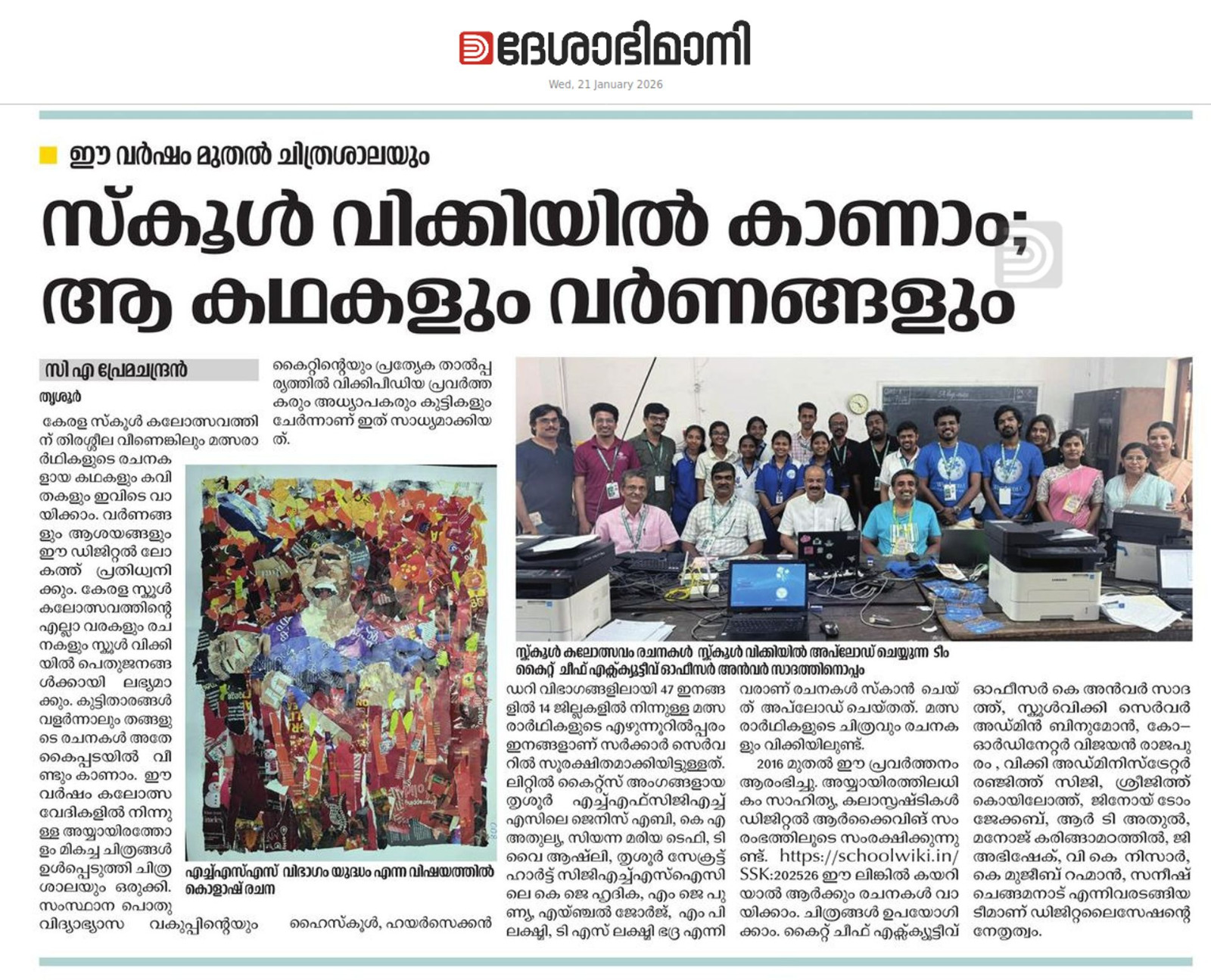 schoolwiki in Kalolsavam - Deshabhimani 21/01/2026