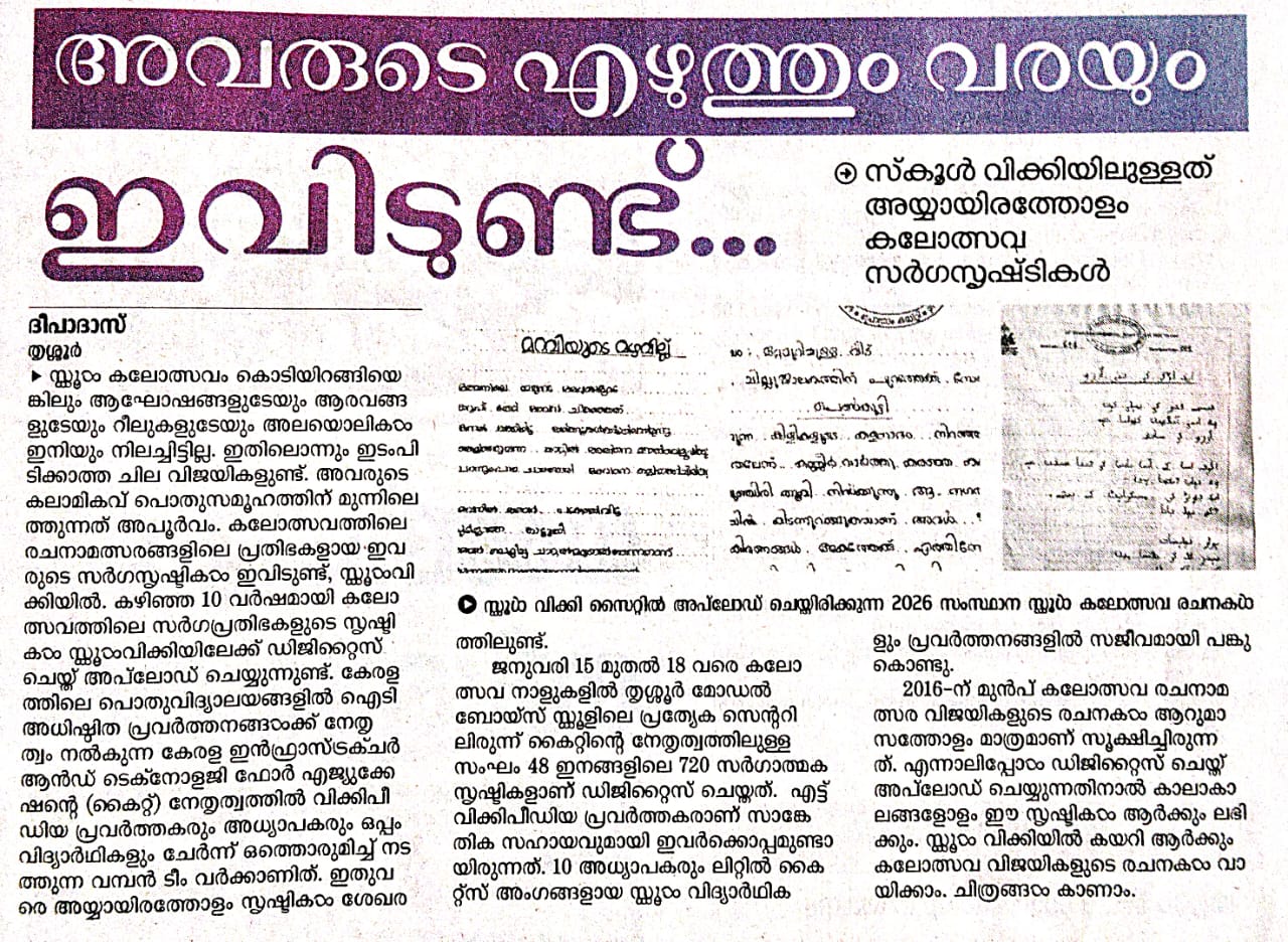 schoolwiki in Kalolsavam - Mathrubhumi 21/01/2026