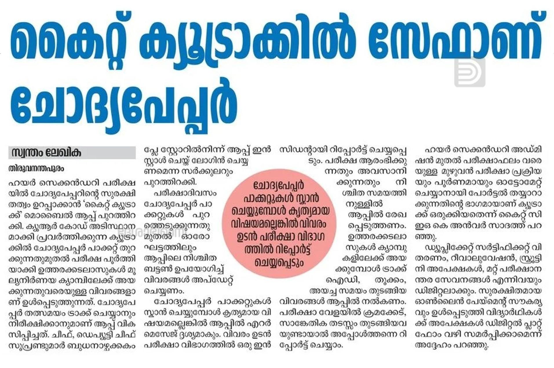 "QTrack" app for track HSS Exams - Mathrubhumi 02/03/2026