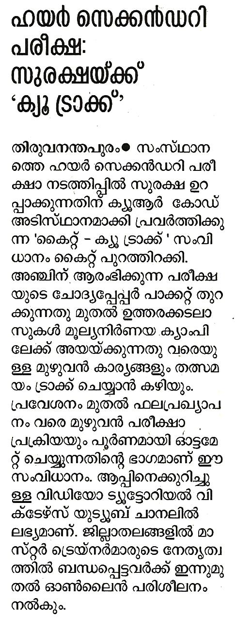 "QTrack" app for track HSS Exams - Manorama 02/03/2026