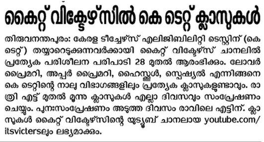 K-TET Classes in VICTERS Channel-Deshabhimani 26/03/2026